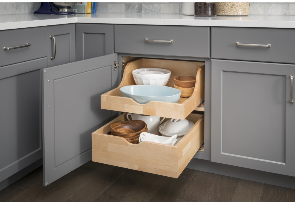 Avoid both big, cavernous cabinets and small, cramped drawers. Transforming your lower cabinets into large drawers will maximize your space and minimize your effort. Pictured: The RO15-WB by Hardware Resources