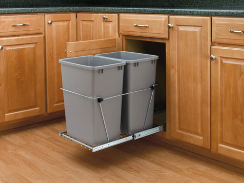 Built-in trash cans and recycling bins, like this double unit from Rev-a-Shelf can be great space savers.